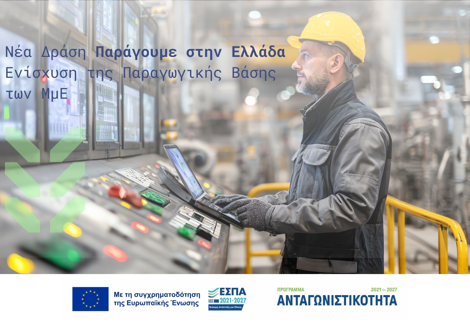 Δημοσιεύθηκε η νέα δράση «Παράγουμε στην Ελλάδα», στο πλαίσιο του Προγράμματος «Ανταγωνιστικότητα» ΕΣΠΑ 2021–2027, με στόχο την ενίσχυση της παραγωγικής βάσης και της ανταγωνιστικότητας των ελληνικών επιχειρήσεων.