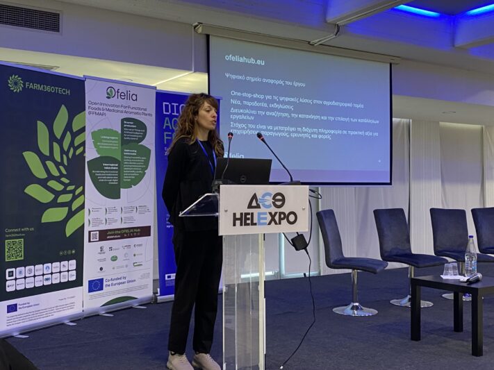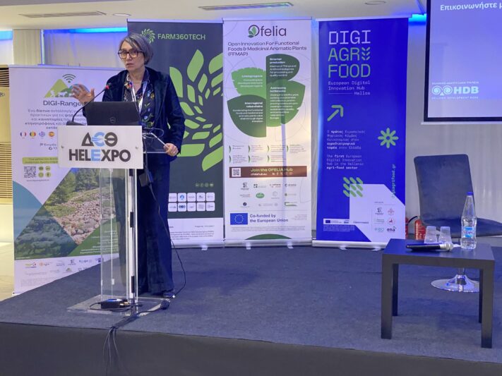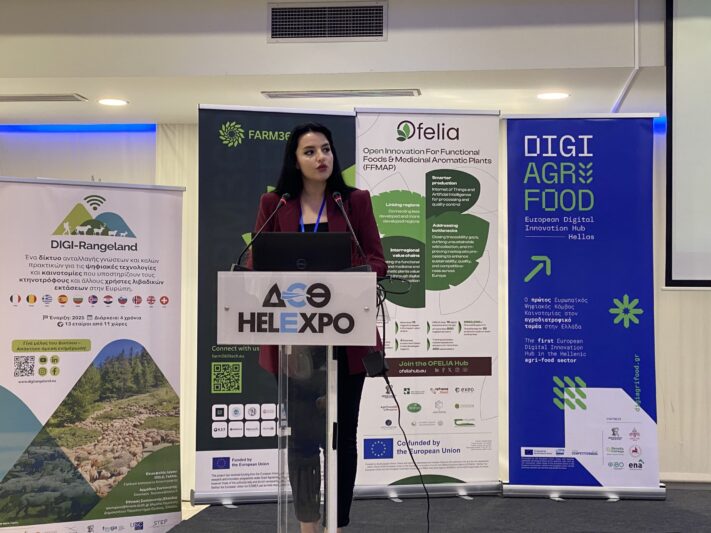 Η Νατάσα Κιοραποστόλου, Project Manager στην EXEO, εταίρος του έργου, παρουσίασε το OFELIA Hub, το ψηφιακό σημείο αναφοράς και one-stop-shop για λύσεις στον αγροδιατροφικό τομέα.  Τόνισε πως στόχος της πλατφόρμας είναι να διευκολύνει την πρόσβαση σε καινοτόμα εργαλεία και να υποστηρίξει παραγωγούς, επιχειρήσεις, ερευνητές και φορείς, λειτουργώντας ως μηχανισμός δικτύωσης και συνεργασίας.