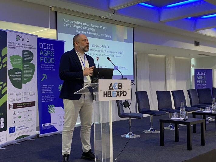 Ο Γρηγόρης Χατζηκώστας, εκπροσωπώντας τη reframe.food, παρουσίασε το Open Call του έργου OFELIA, εστιάζοντας στις χρηματοδοτικές ευκαιρίες για μικρομεσαίες επιχειρήσεις (ΜμΕ) του αγροδιατροφικού τομέα, ιδιαίτερα στα τελικά στάδια της καινοτομίας πριν την εμπορική αξιοποίηση. Έμφαση δόθηκε στις χρηματοδοτούμενες δραστηριότητες, όπως η ανάπτυξη νέων ή βελτιωμένων προϊόντων και υπηρεσιών, η πιλοτική εφαρμογή και επικύρωση λύσεων, καθώς και η προετοιμασία για την είσοδο στην αγορά.